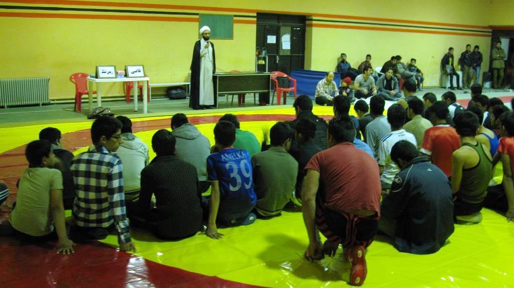 توضیح اینکه : بعد از شنیدن این صحبت حاج آقا قرائتی تصمیم گرفتیم نماز رو اینجوری اقامه کنیم؛ ایشون می فرمایند: «نماز هیاهو میخواهد، وقتی رسول خادم در مسابقات کشتی در آمریکا قهرمان شد،