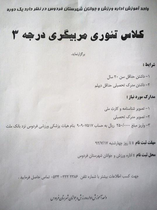 این تشک با عنایت و مساعدت مهندس غلامی مدیریت جهاد کشاورزی شهرستان فردوس به صورت امانت تحویل ورزش و جوانان اسلامیه شده و مشکل نبود تشک مناسب تمرینات کشتی را رفع کرده است.